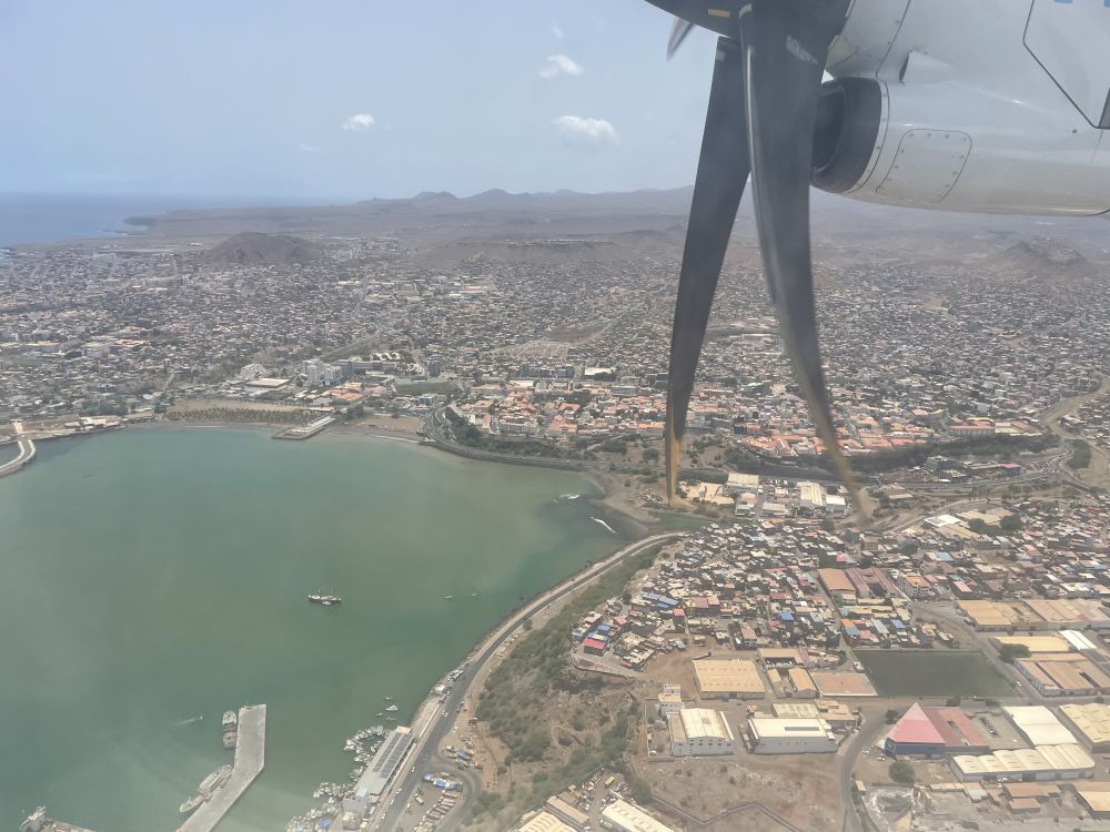 Na een kort vluchtje, waarbij we een groot deel van de vlucht uitzicht hadden op Santiago, komen we aan in Sao Vincente. Ook een erg klein luchthaventje.