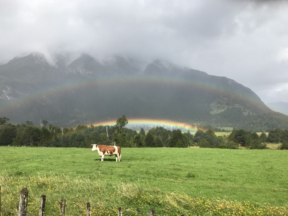 Eenmaal in Puyuhuapi (dat er trouwens erg mooi bij ligt) aangekomen begint het spel, zoek een overnachting. De campings hier zien er niet echt aantrekkelijk uit, dus zoeken we een alternatief. Na meerdere kamers en cabana’s bekeken te hebben zien we een leuke cabana met een houtkachel en een keukentje. Ook genoeg ruimte voor de meiden om te spelen. Ideaal en nog redelijk geprijsd ook.