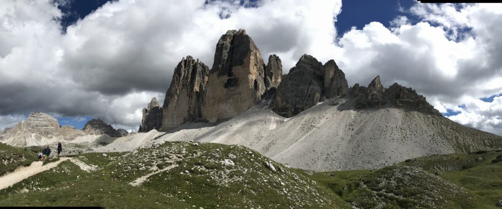 Vandaag gaan we een wandeltocht maken langs de Tre Cime, ook wel bekend als de Drei Zinnen. Drie hoge pieken naast elkaar die wat doen denken aan de Torres del Paine. Maar dan in een wel wat ander landschap.