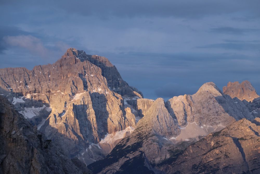 Ook het licht op alleen de pieken van de bergen hier geeft een heel andere ervaring dan het beeld overdag als alles in de volle zon is.