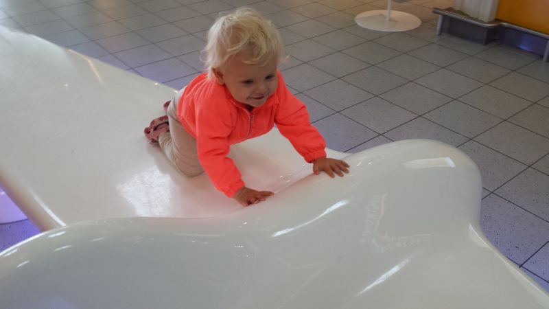 Vanochtend nog de laatste dingetjes voor de koffer gepakt en daarna op naar Schiphol. Lang parkeren was behoorlijk vol, dus het was even zoeken naar een plaatsje, maar uiteindelijk toch een gevonden. Anika vond de busrit van P3 naar Schiphol zelf al erg leuk. Een ander meisje in de bus dacht er net zo over: “Leuk he papa, in de bus.” Schiphol de douane door. Mijn schoenen zagen er kennelijk gevaarlijk uit en moesten uit en apart door de scanner. Doet mij ook goed om te weten dat ze veilig zijn, vertrouwde ze namelijk niet helemaal en kende/had ze ook nog maar net. Anika wist de beveiligingsmeneer er van te overtuigen dat het echt niet kon om een flesje water van haar af te pakken en na deze heldendaad wilde Anika echt even de beentjes strekken. Na een laag trapje een paar keer op en af toch maar ergens anders heen (was wel een erg onhandige plek). Daar lekker geklommen op een vliegtuig bankje. En toen, om het hoekje, een grote trap waar je kan liggen met in het midden een glijbaan. Dat was me toch leuk. Een hele hoge glijbaan was het ook. En al was het glijden best wel een beetje eng, na afloop was het wel hard lachen. https://www.youtube.com/watch?v=ctF86SqbiZQ&feature=youtu.be Daarna het vliegtuig in. Anika hield zich goed. De Ipad met Teletubbies er op hielp wel en zo waar heeft Anika nog een tijdje geslapen in het vliegtuig. Eenmaal aangekomen kwamen we er achter dat onze bankpassen niet werkten, die waren we vergeten te deblokkeren. Nooit bij stilgestaan dat dat voor IJsland ook moest (is toch Europa). Was eenvoudig op te lossen met een telefoontje aan de bank. Onze shuttle naar de auto stond al te wachten. Na een kort stukje rijden konden we zonder al te veel poespas de auto meenemen. Grote bak waar alle bagage makkelijk in past, dat is wel zo praktisch. Wordt al redelijk burgerlijk zo. Autostoeltje is nagenoeg nieuw en van prima kwaliteit. Veel beter dan waar we in de Canarische Eilanden mee opgescheept werden.