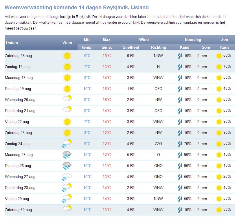 Weersverwachting voor de eerste week ziet er prima uit en ook week 2 ziet er voor IJslandse begrippen goed uit.