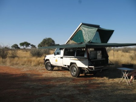 We hebben inmiddels spullen voor een braai en genoeg water voor een week schat ik, dus dat komt wel goed. Na wat herschikking van onze spullen is de auto ook erg handig in het gebruik. Hij rijdt als een tank (net zo log en net zo solide) en is voorzien van een enorme bullrack zodat je auto bij de botsting met de eerste de beste olifant niet teveel schade oploopt.