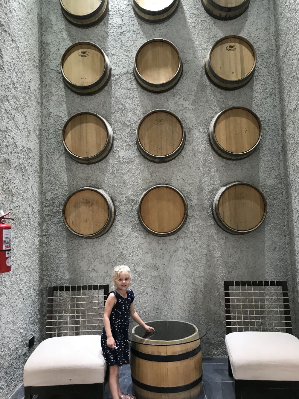 Op de weg terug van de eerste bodega lopen we langs nog een andere bodega waar we nog een keer wijn proeven.