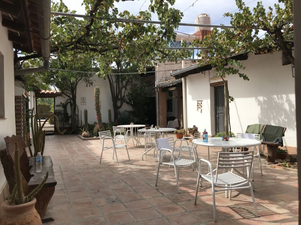We zijn begin van de middag al in Cafayate, waar wij een leuke overnachtingsplek hebben, met een mooie binnentuin, schommelstoel en een zwembad.