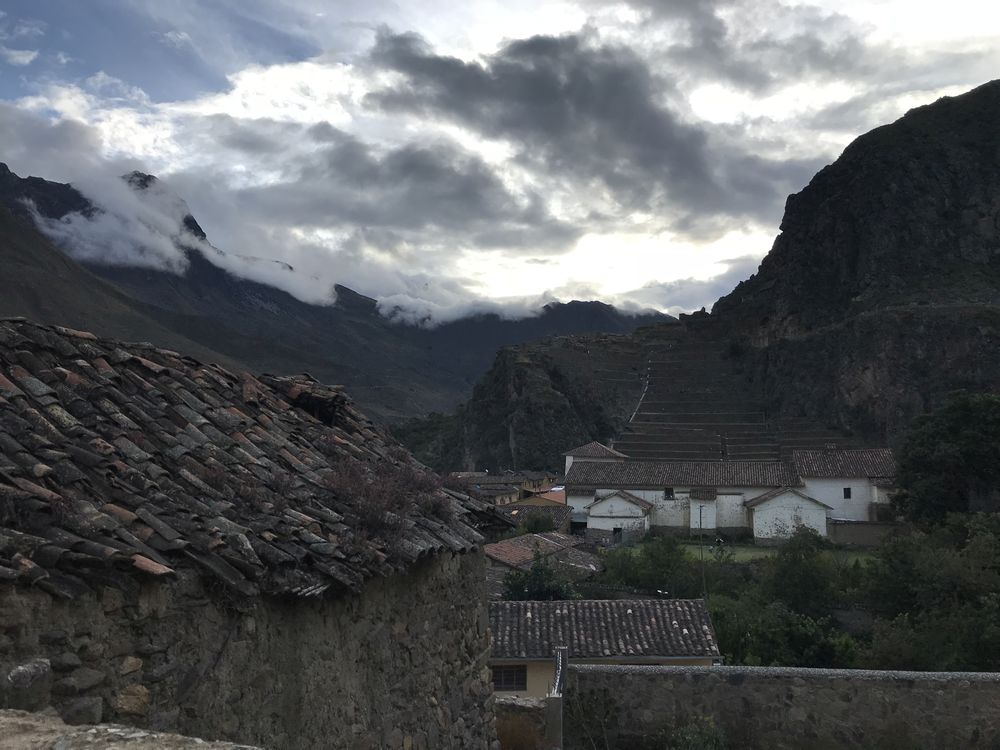 De overnachting is apart en wordt duidelijk gerund door hippies. De kamer is leuk en schoon en we hebben mooi uitzicht op het oude inca fort in de bergen.