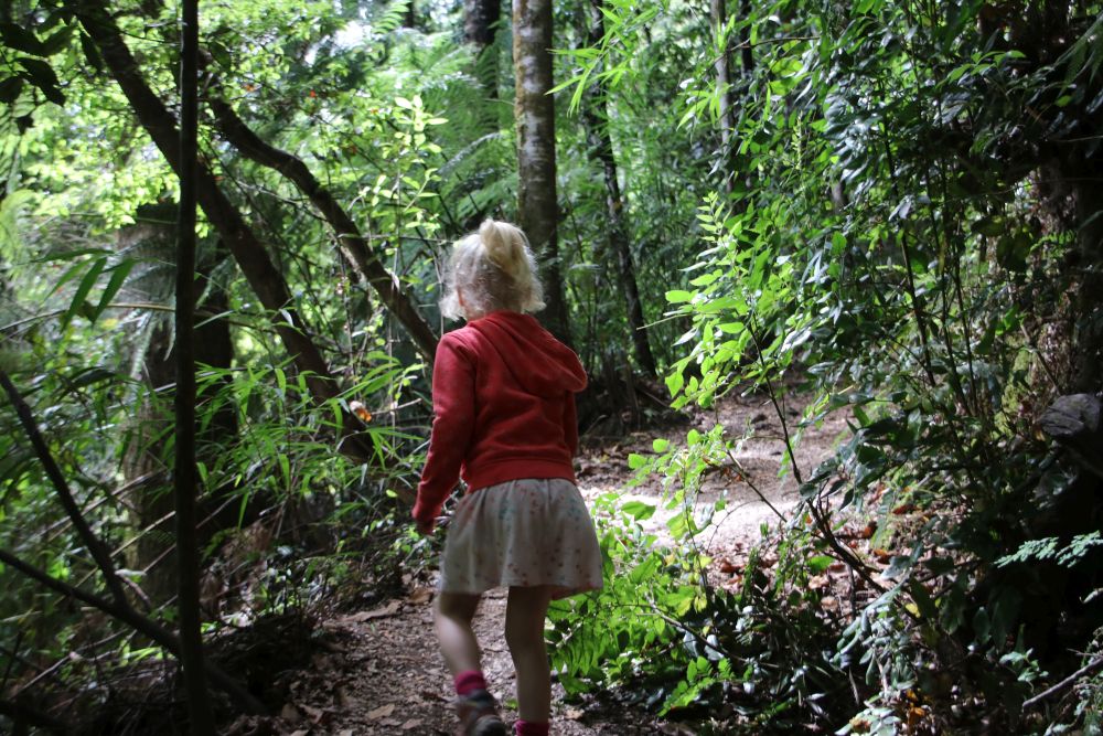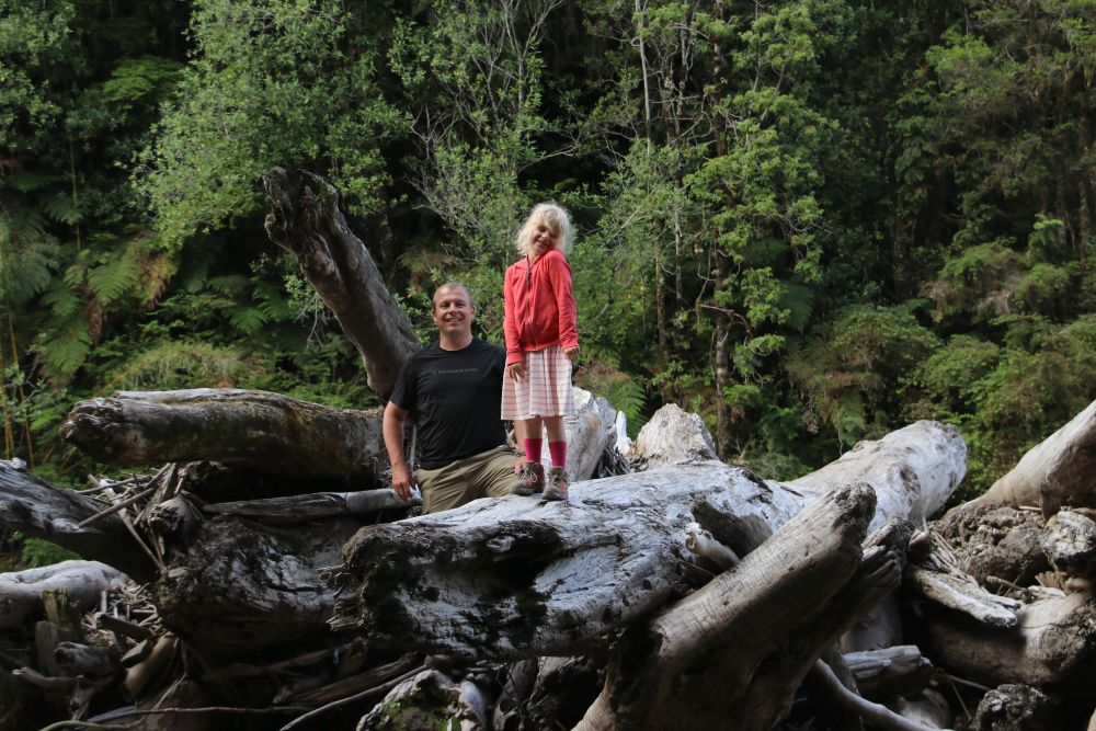 Na lekker spelen in de hut gaan we nog een tochtje naar twee andere watervallen maken. Anika heeft er al helemaal zin in om weer gevaarlijke dingen te doen.