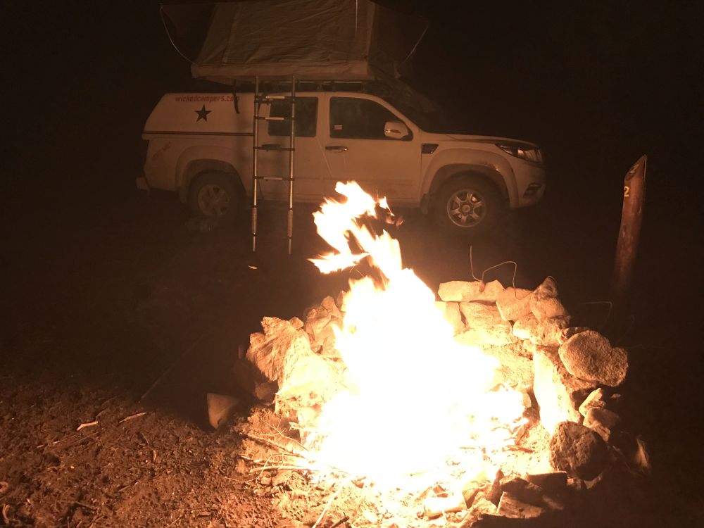 We maken nog een lekker vuurtje van drijfhout dat we verzameld hebben op het strand voor de gezelligheid, klappen de tent uit en gaan dan lekker slapen.