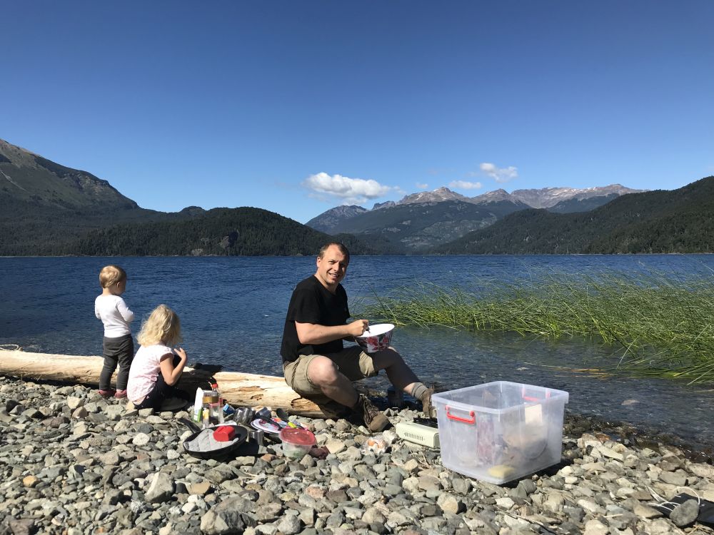 De grensovergangen bij Futaleufu gaan zowel aan aan de Chileense als Argentijnse zijde best vlot en daardoor redden we het nog om door te rijden naar de camping in het NP Los Arceres. Het is inmiddels wel erg warm. Daar vinden we een mooie kampeerplek, Punta Mattos, aan een meer.