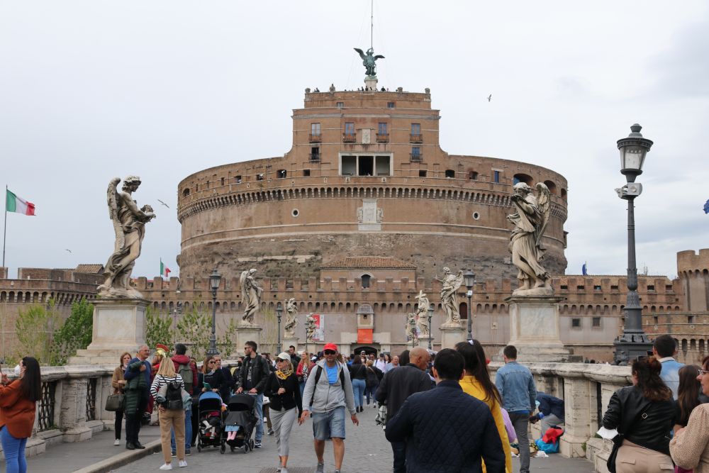 Het is knetterdruk in de stad. Naar later blijkt komt dat door een nationale feestdag in Italie (einde WO II), waardoor ook veel Italianen vrij zijn en een dagje naar Rome zijn gekomen. Dat laatste wordt nog versterkt doordat dit weekend Rome 2775 jaar bestaat en dat gevierd wordt in de stad met een grote optocht (wisten wij ook niet).